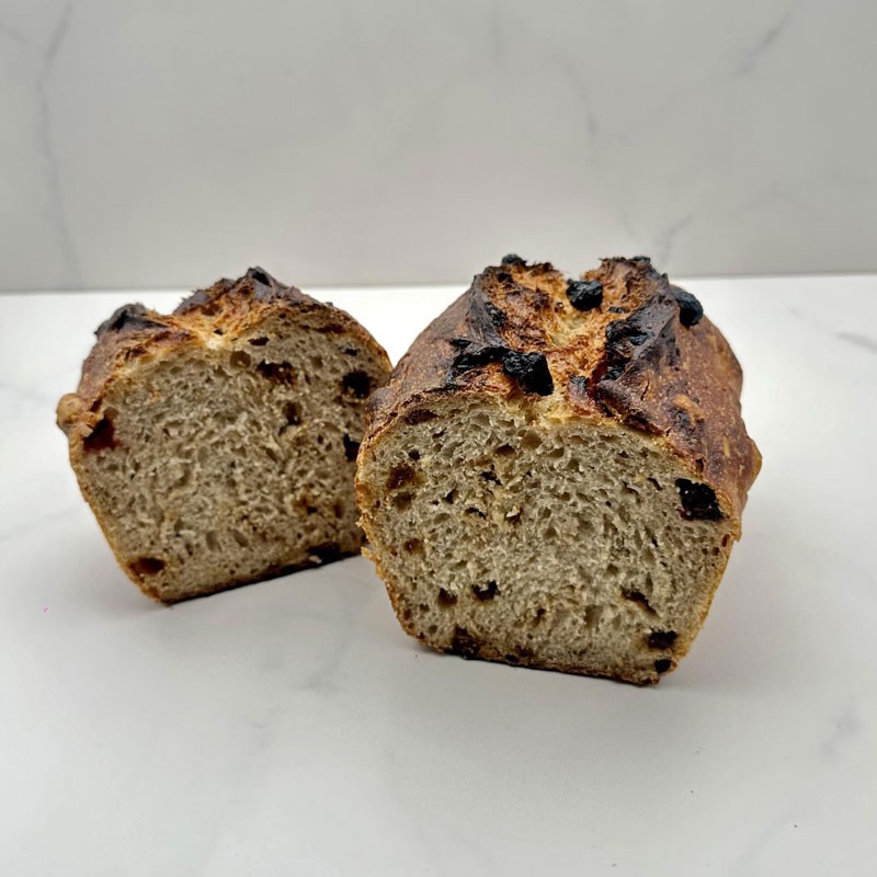 Un pain aux fruits mélangeant farine T65, T150 (complète) et farine de seigle. Un choix riche en fibres et en saveurs pour une alimentation équilibrée.